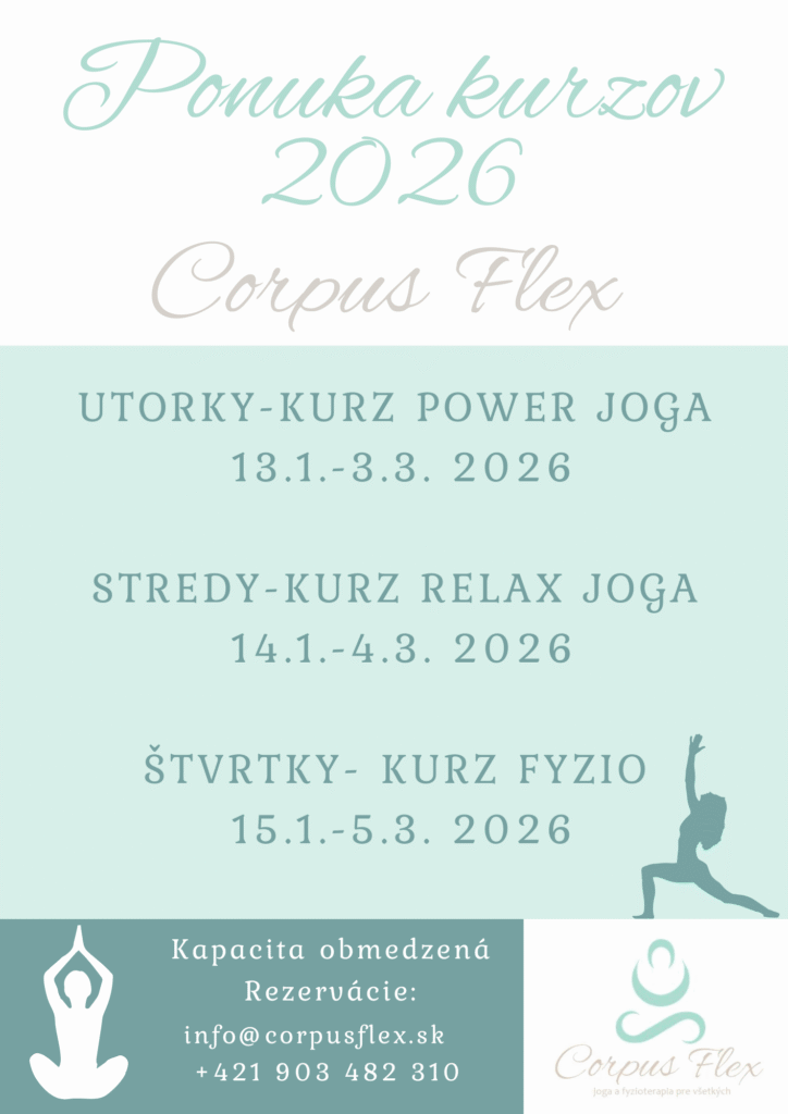 V našej ponuke máme od Januára 2026 vaše obľúbené skupinové kurzy. Power joga-utorky, Relax joga v soľnej jaskyni- stredy a skupinové fyzio- štvrtky. Všetky kurzy v čase 18:00-19:00. Novinkou je nové miesto pre skupinové kurzy. Nové priestory na naše pohybové kurzy sú na Priemyselnej ulici 5863 v Malackách. Začíname už 13.1 2026-utorok. Stačí si len vybrať a mať chuť sa hýbať.